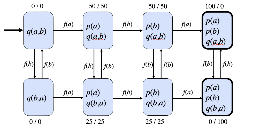 Now, combining this dataset with the state description above and the operation definitions, we can compute what must be true in the next state.